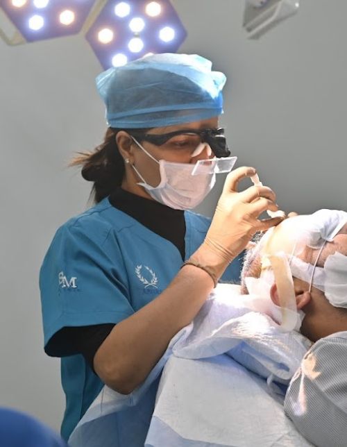 Advanced FUE (Follicular Unit Excision) is the latest technology in the field of modern hair restoration surgery. Unlike older techniques, manually extracting individual hair follicles from the back of head and directly implanting them with the help of precision implanters without creating any reception holes or slits, ensuring natural growth in terms of direction, density, and hairline design. It’s a revolutionary method of performing hair transplants wherein shaving of hair before surgery is not required (UNSHAVEN HAIR TRANSPLANT). At our clinic, Dr. Shalini Malhotra personally performs every surgery, combining artistry with surgical expertise to deliver results that are virtually undetectable. With no stitches, minimal downtime and lifelong results, Advanced FUE is trusted by patients worldwide seeking the best hair transplant in Delhi and India.